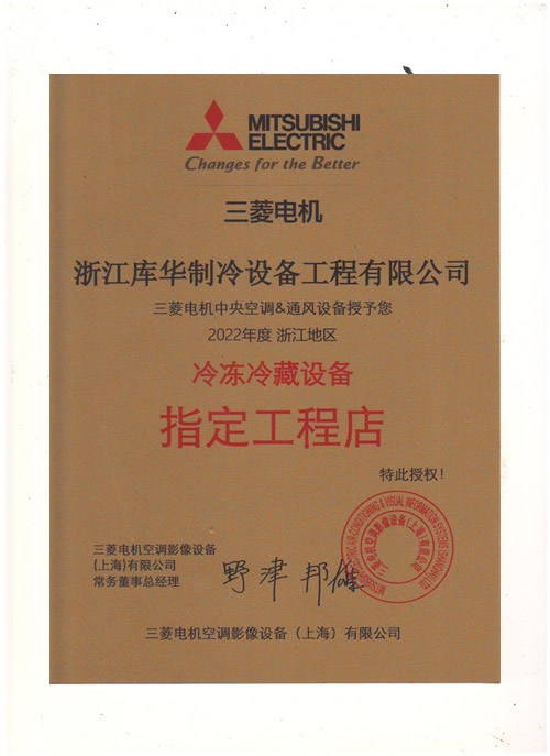 2022年度三菱電機(jī)冷凍機(jī)指定工程店--庫(kù)華制冷